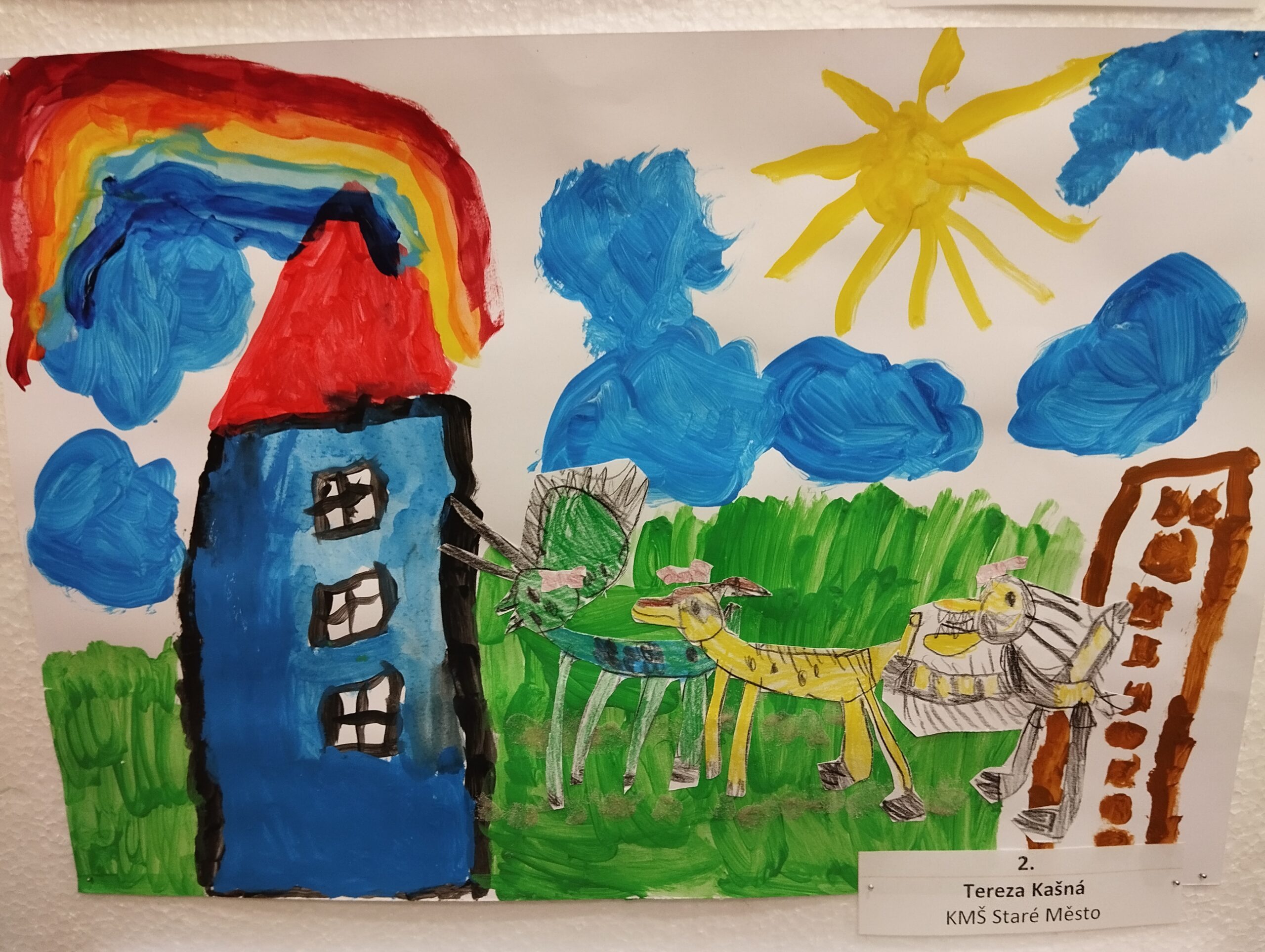 Tak jako každým rokem i letos se naše děti zúčastnily výtvarné soutěže, kterou pořádá  SVČ Klubko Staré Město ve spolupráci s Městskou knihovnou Staré Město. Tématem letošní soutěže bylo „Město očima zvířat“. S nadšením a správným výtvarným zapálením se také naše děti zapojily. Potěšilo nás, že naše Terezka Kašná se svým obrázkem „Dinosauři“ ze třídy Kuřátka získala v I. kategorii MŠ krásné druhé místo, děti ze třídy Sluníčka se svým výtvorem „Návrat domů“ obdržely v V. kategorii skupinová práce pěkné 3. místo. Děkujme všem dětem, které se zapojily vytvořit něco krásného a potěšit příchozí návštěvníky knihovny ve Starém Městě. Přijďte si prohlédnout výtvarná díla do knihovny ve Starém Městě!